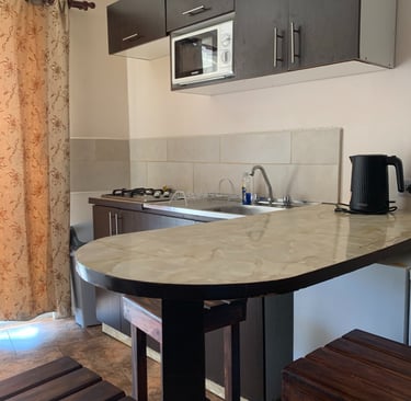 Habitaciones independientes con diseño funcional y espacioso. Equipadas con cama matrimonial, camarote y cocina propia, ofreciendo total autonomía al huésped. Cuentan con baño privado, televisión y ropa de cama completa (sábanas, frazadas y cobertor). Servicio de toallas disponible a pedido. Una solución cómoda y práctica para su estadía.