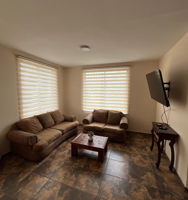Disfruta de la máxima amplitud en nuestra casa privada, diseñada para grupos que buscan comodidad y conveniencia. Cuenta con un patio espacioso y estacionamiento privado exclusivo. El interior ofrece un acogedor living con sillones y televisión, cocina totalmente equipada y dos baños completos (uno de ellos con lavadora). Dispone de tres dormitorios: el principal con una cama King, un segundo dormitorio con cama matrimonial y un tercero con una cama de plaza y un camarote. Incluye ropa de cama completa y servicio de toallas a solicitud.